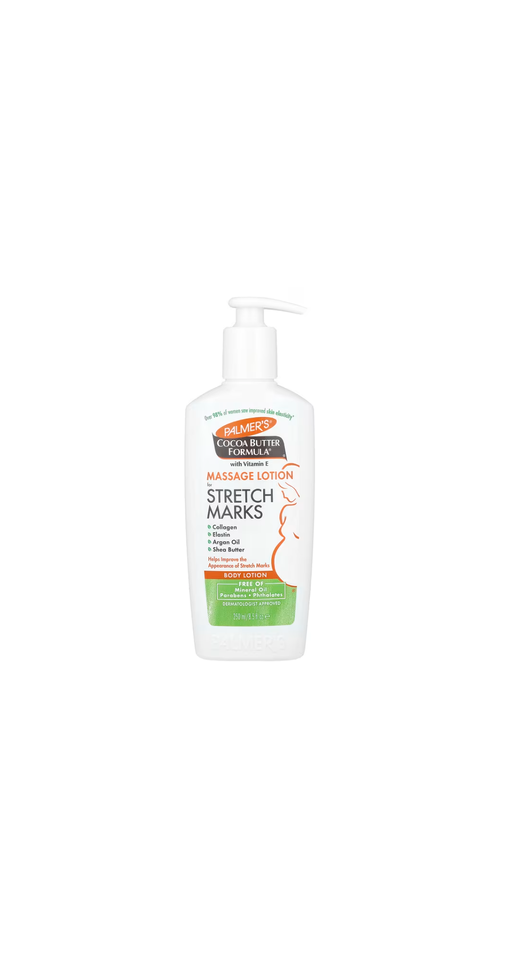 Palmers® 마사지 로션은 피부 탄력을 눈에 띄게 개선하고 튼살을 줄이는 데 도움이 됩니다. 순수 코코아 버터와 시어 버터, 천연 오일, 콜라겐, 엘라스틴, 루테인이 48시간 동안 피부를 촉촉하고 유연하게 유지하여 피부가 더 쉽게 늘어나도록 합니다. 임신 중 및 임신 후 튼살이나 체중 변동에 널리 권장됩니다. 이 끈적임 없는 로션은 일반 모이스처라이저 대신 몸 전체에 사용하기에 이상적입니다.